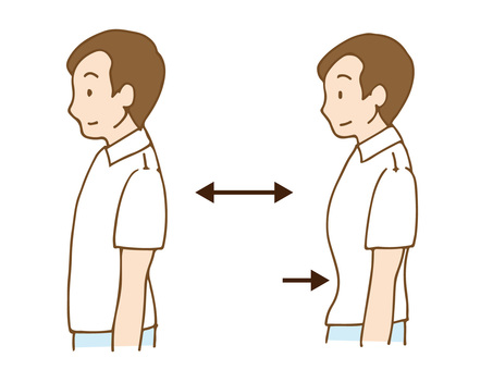 内臓脂肪が増えるとお腹が前方にせり出すような形になるため、姿勢が悪化してさらにお腹が出て見えるという悪循環に入りやすくなります。