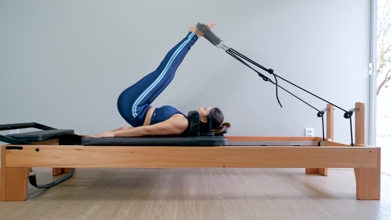 リフォーマーを使い、全身の連動性を高める代表的な動きです。