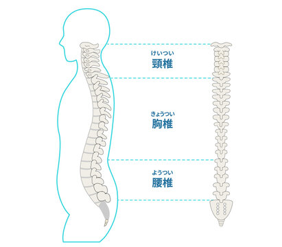背骨は首・胸・腰の骨が24個連なり、仙骨や尾骨を含めた複雑な構造になっています。