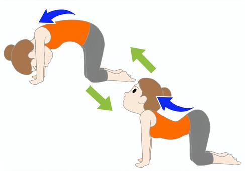 四つ這いで背骨を丸めたり反らしたりする動き、体を左右に傾ける側屈、上半身をひねる回旋などを日常に取り入れることで、背骨の可動性を高めることができます。