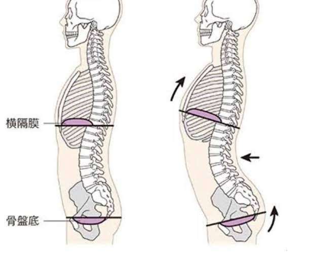 この状態では横隔膜と骨盤底筋群の位置関係がずれ、うまく腹圧を高められなくなります。