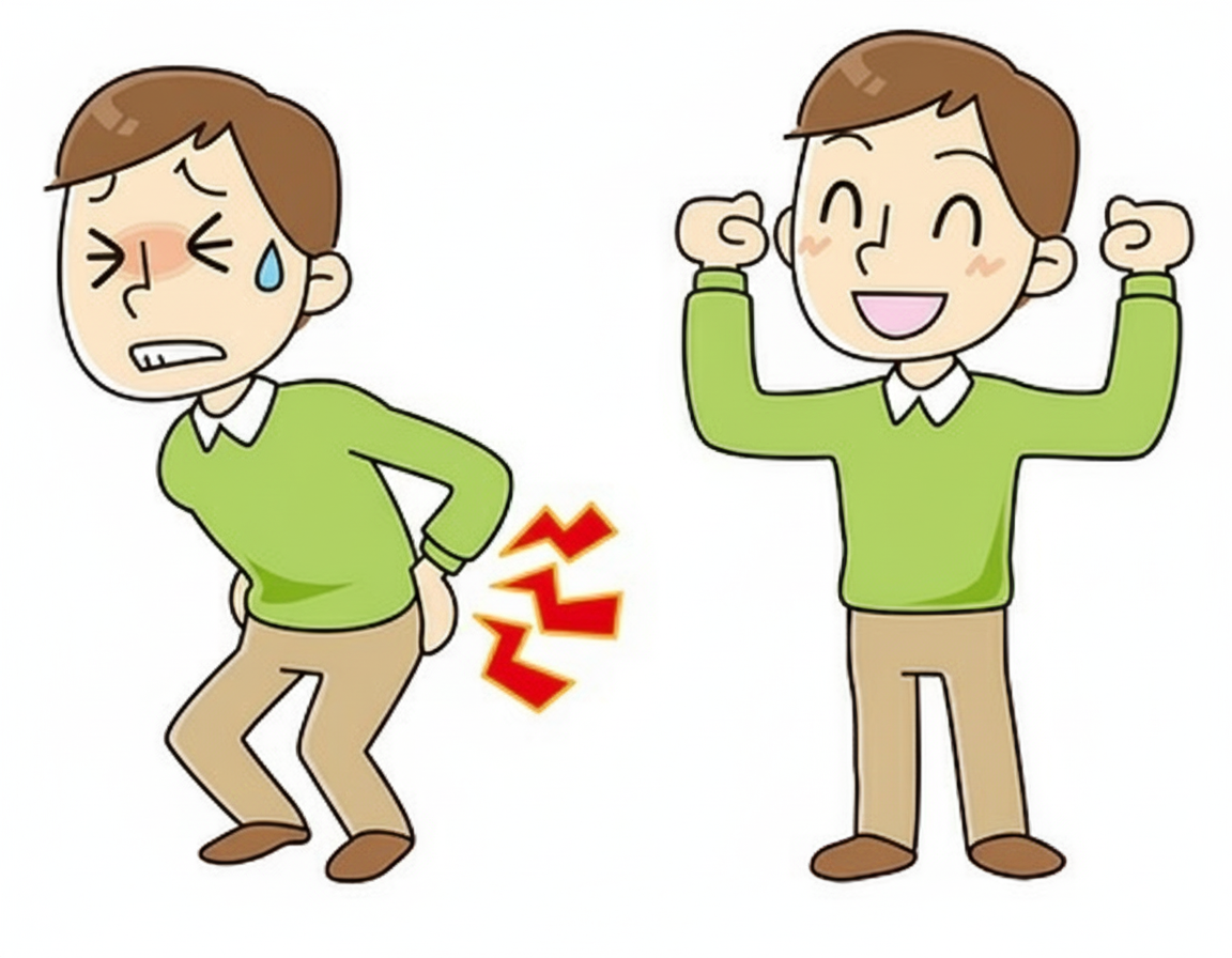股関節の可動不足は腰部の代償を招き、立ち上がりや歩行のたびに腰へ負担が集中します。